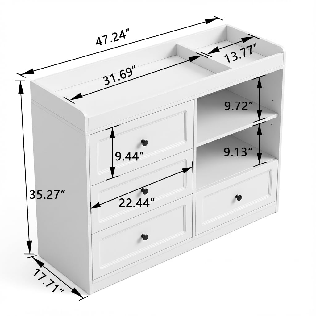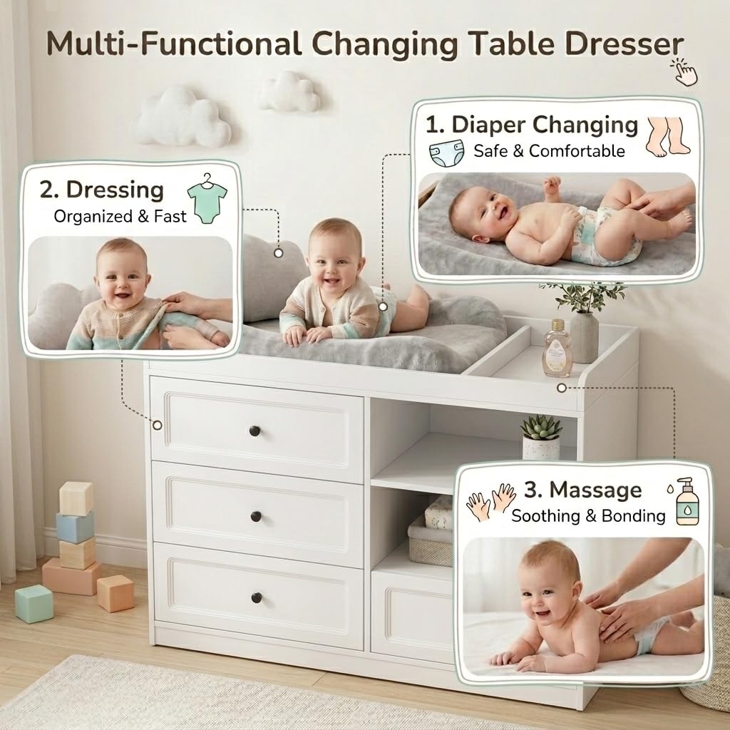 【Safety & Comfort Design】This baby furniture for nursery features safe round edges design, prevent bumps and injuries during changes.The comfortable height reduces the need to bend over, preventing back strain for parents and making diaper changes quicker and easier