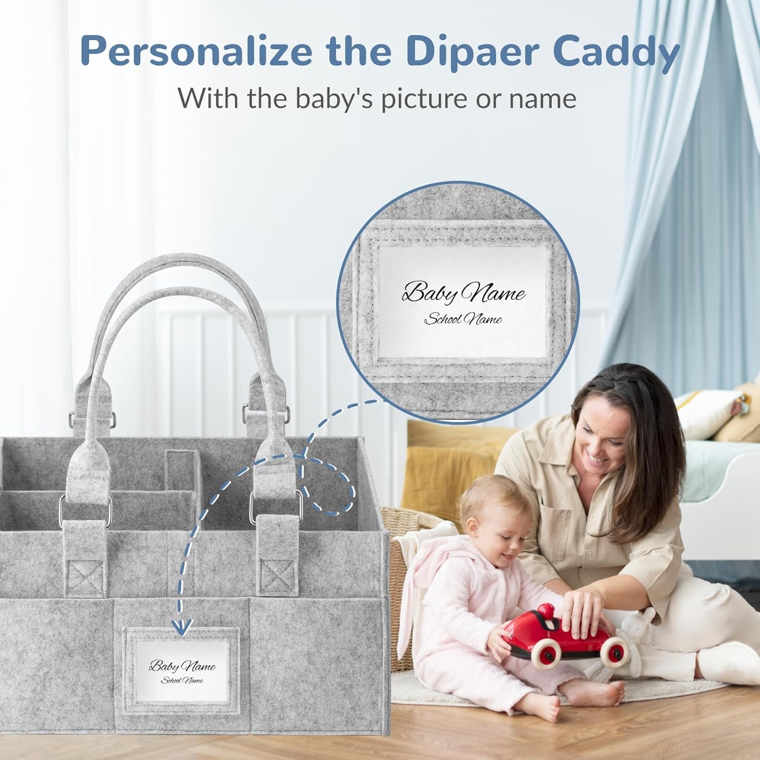MAKE BABY ESSENTIALS STORAGE EASY: Our baby diaper caddy is large enough for storing dozens of baby stuff: baby toys, diapers, baby clothes, baby wipes, bibs, and other baby essentials! Keep everything you need within arm’s reach for a hassle-free nursery experience.