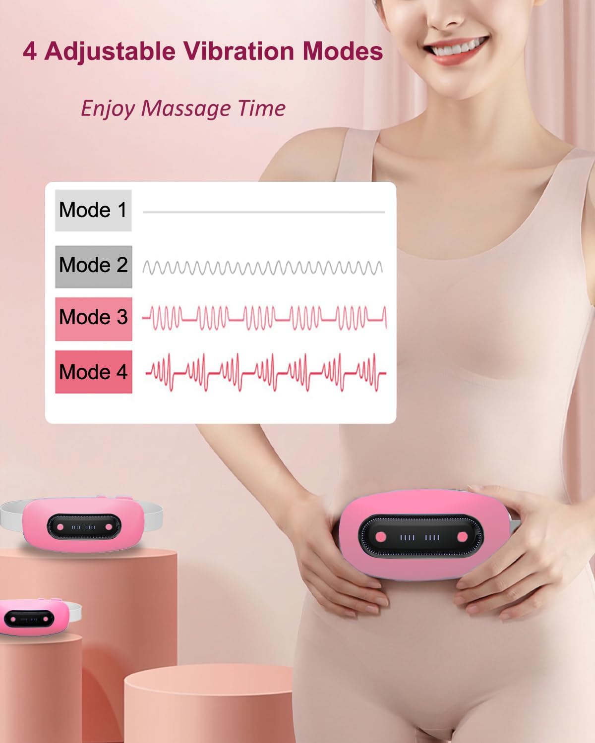 New Design: The electric portable cordless heating pad has 4 heat levels and 4 massage modes, adjustable elastic belt with connect buckle and Type-C charging.